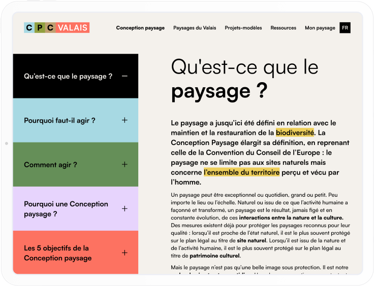 Dieses Projekt zeigt, wie Design, Technologie und Pädagogik zusammenwirken können, um ein ansprechendes Nutzererlebnis zu schaffen. Die CPC VS-Website beschränkt sich nicht auf Information: Sie fördert die aktive Aneignung von Landschaftsfragen, indem sie interaktive und personalisierte Tools anbietet. Dank dieser Zusammenarbeit wird die CPC VS zu einem konkreten Hebel, um den «Landschaftsreflex» in den kantonalen und kommunalen Praktiken zu verankern.